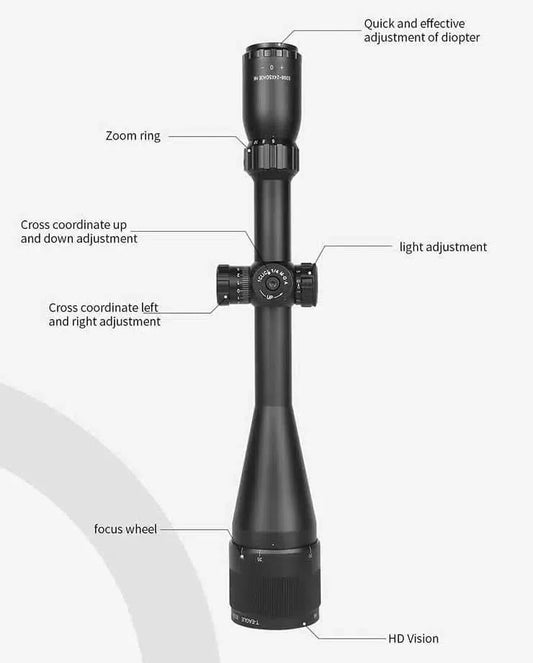 T-Eagle EOS 6-24x50 AOE HK 1/4 MOA Front Parallax Riflescope Red Green Reticle