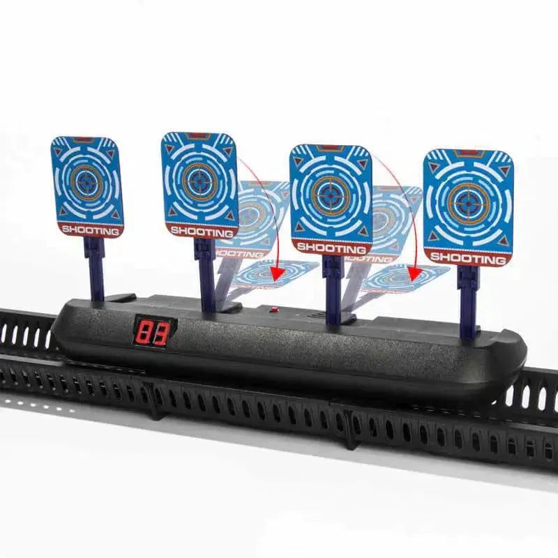 - This auto reset moving target is for nerf darts , gel balls, soft bullet shooting play.- has electronic scoring and light & sound effect after hit.