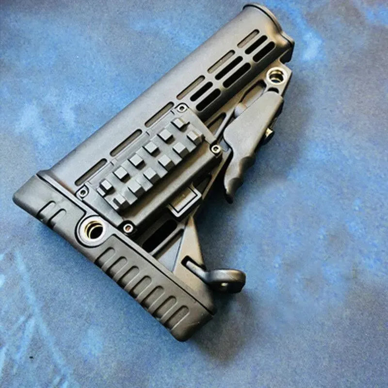 Features: short rails on side, gun sling swivel, rubber cheek pad.