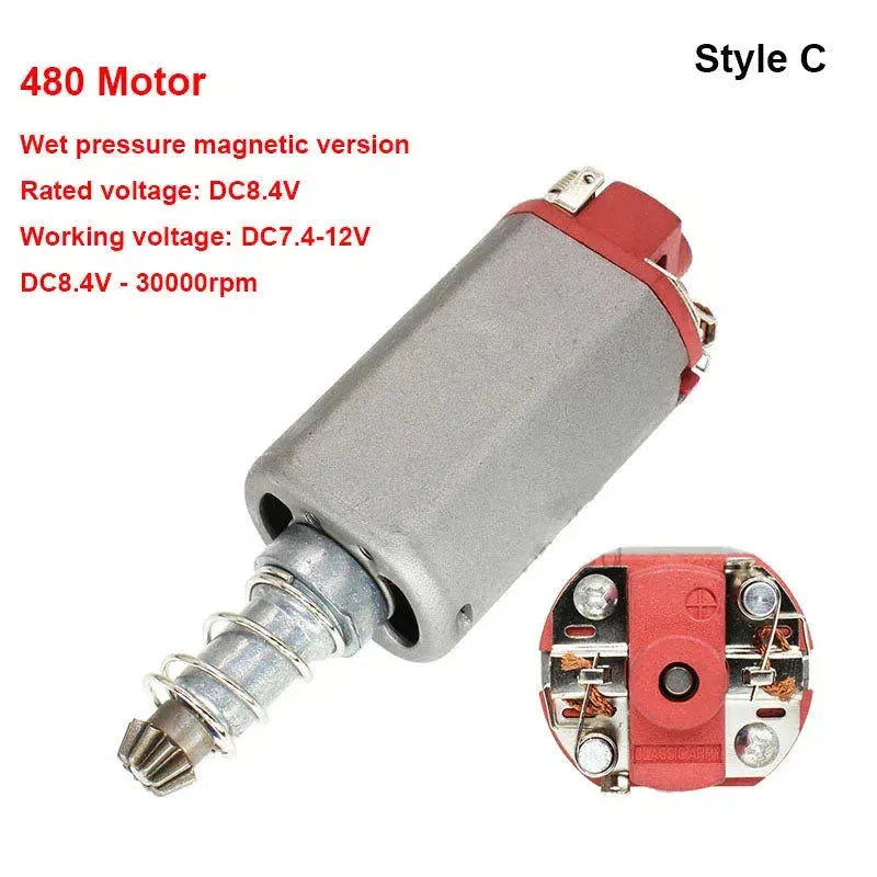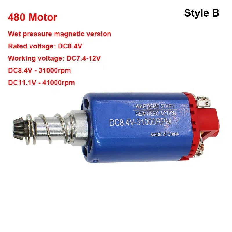 Introducing the CH Long Axis 480 High Speed Torque Motor for V2 Gearbox by chihai. This upgraded motor is compatible with gel blaster and airsoft gearboxes using a long shaft motor.