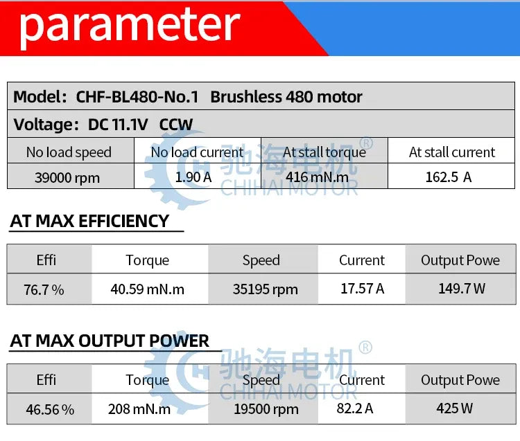 No Load (RPM):DC: 11.1V-No Load (RPM): 39000