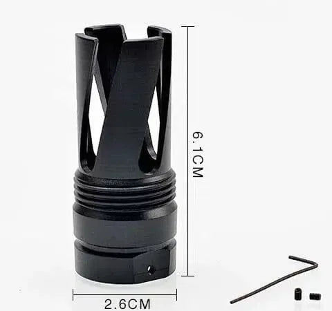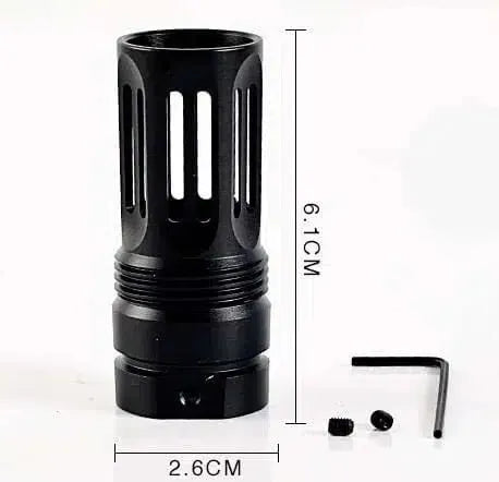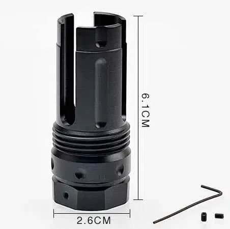 Introducing our high quality metal flash hiders for gel ball blasters. These flash hiders are specifically designed to fit gel blasters with a 19mm thread, including popular models like JM Gen8 and RQ P90. Choose from a variety of styles, such as M1, fire pig, and trident, to customize your blaster. Durable and sleek, these flash hiders add an extra level of realism to your playing experience.