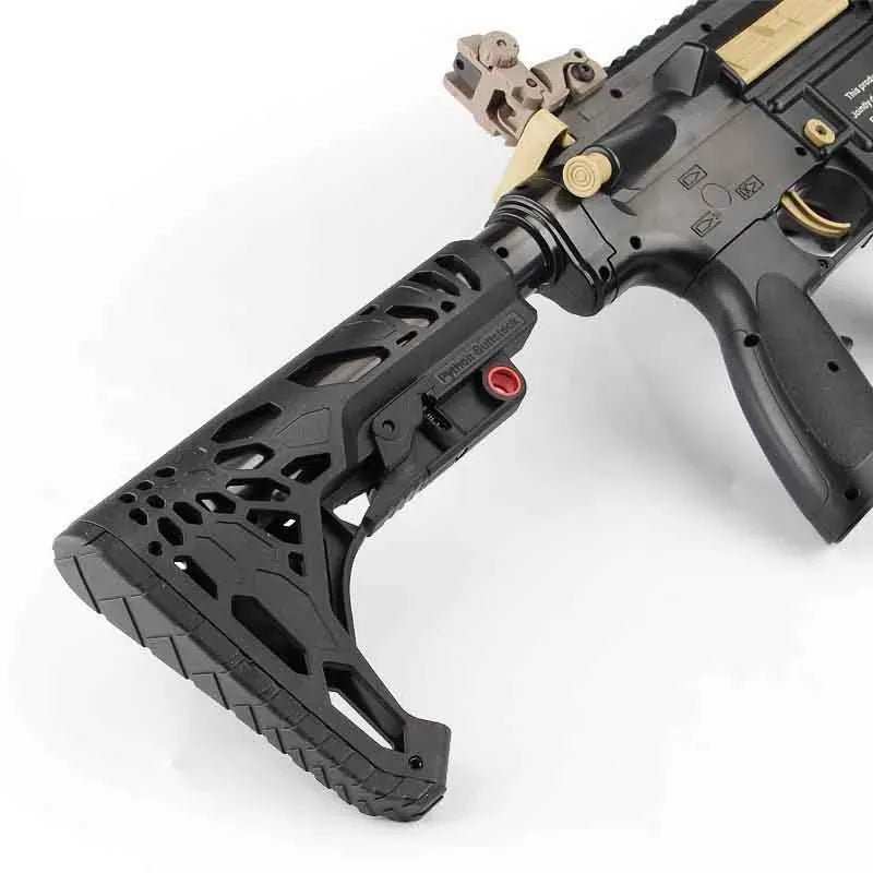 The MGP CQB Python Butt Stock combines style and functionality, reducing weight without compromising strength. Perfect for gel blasters and AEG airsoft toy guns, with a soft rubber cushion and adjustable buffer tube length. Includes a QD swivel installation option. 4 Colors available.