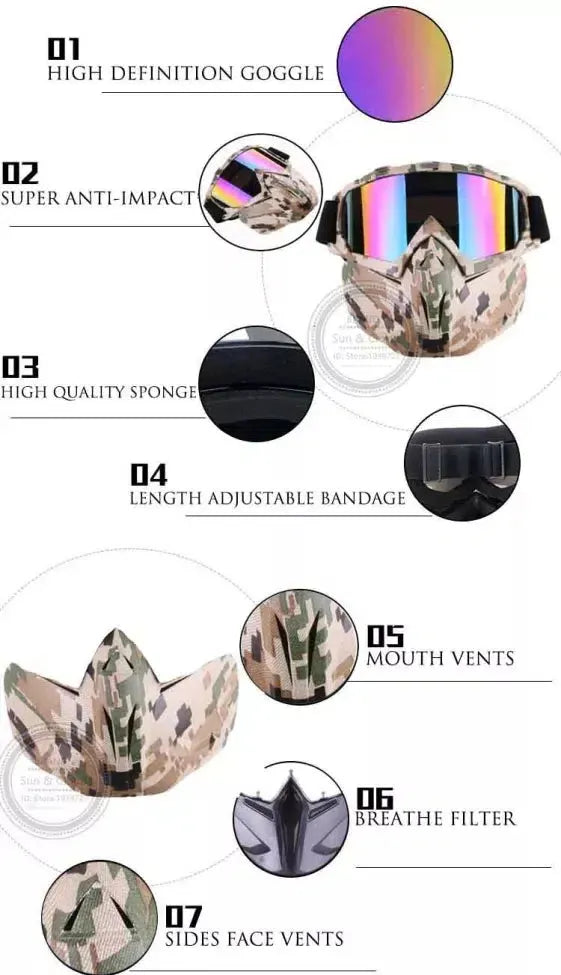 This Retro Harley Tactical Face Mask with Detachable Google from bollfo is made with premium ABS plastic and offers a 1:1 scale and 200g weight. The adjustable strap lets you customize the fit to your preference. This mask provides an ideal level of protection for your next outdoor Nerf gun game.