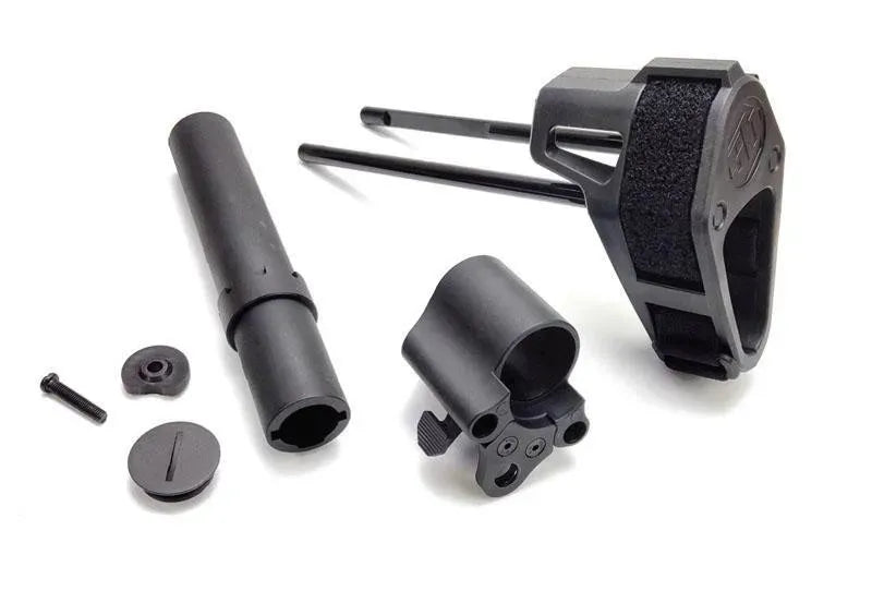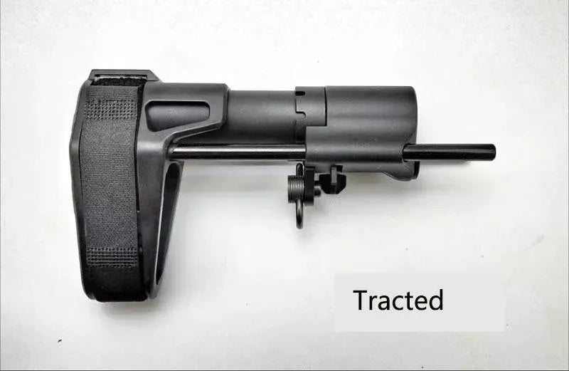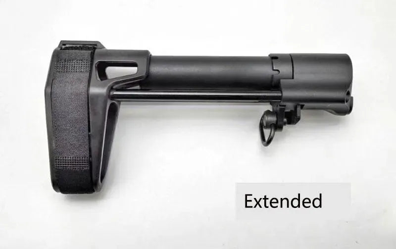 Upgrade your rifles with the SB PDW Pistol Brace Butt Stock. This durable nylon stock features a 3-position adjustable and extendable design for a perfect fit. Its leverless extension allows for easy release, and it comes with a proprietary buffer tube for easy installation. Compatible with various rifle AEG gel blasters and airsoft, this black or tan stock also includes a QD attachment point for added convenience. Upgrade your build with this PDW style pistol brace.