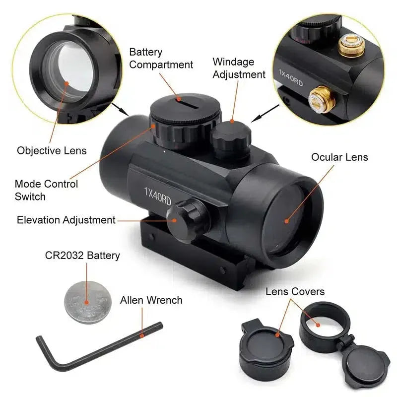 Tactical 1x40RD Red Green Dot/Cross Optical Sight