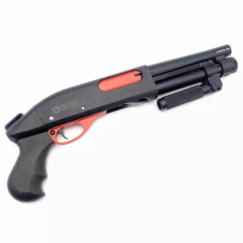 The aka m870 r2 gel blaster is replicated from the famous “super shorty” made by Serbu Firearms, as seen in Terminator: Dark Fate. This sawed-off shotgun m870 gel ball blasters features a solid full nylon construction with a metal outer barrel, it has 8-13m shooting range and with Shell Ejecting function.