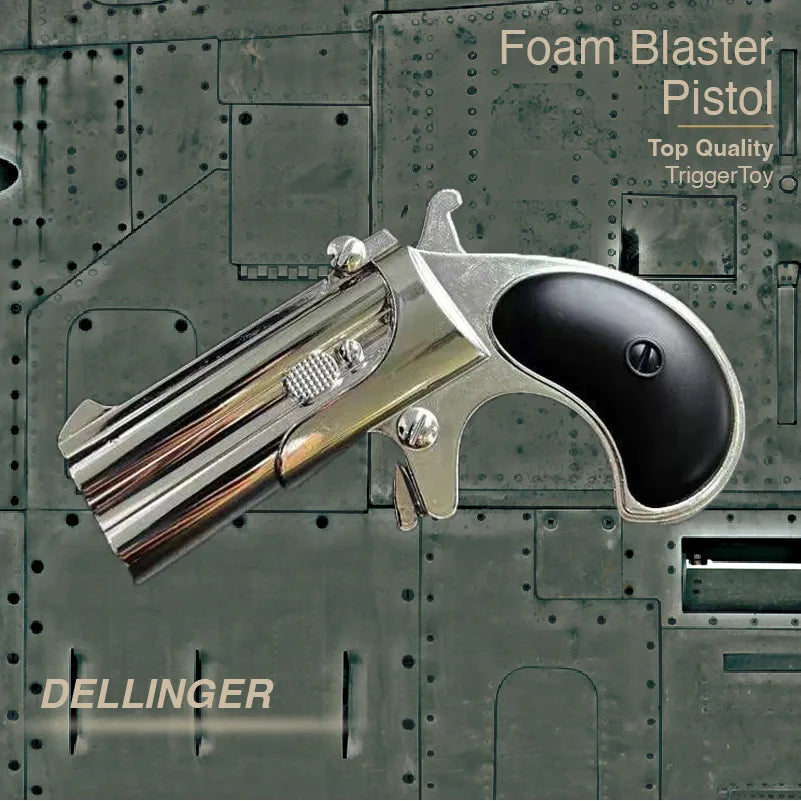 Discover the Derringer Pocket-Sized Foam Blaster, a toy-level gun that mirrors the appearance of a real firearm while delivering thrilling foam dart action. This compact blaster packs a punch, providing rapid-fire fun and precise shooting for both indoor and outdoor play.