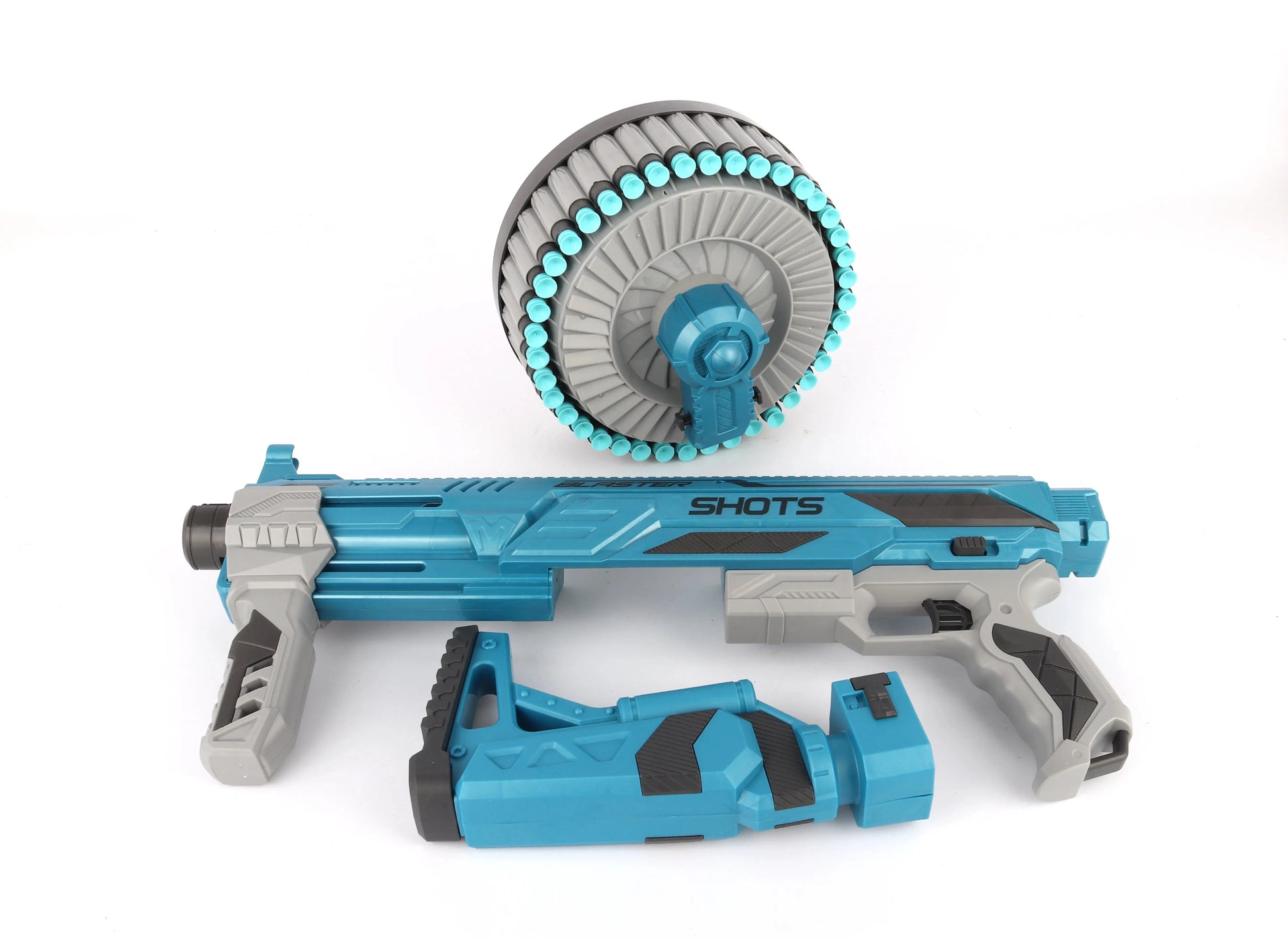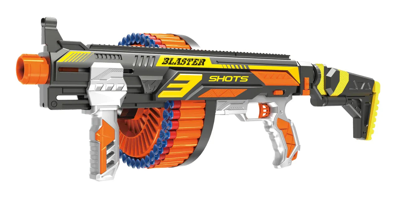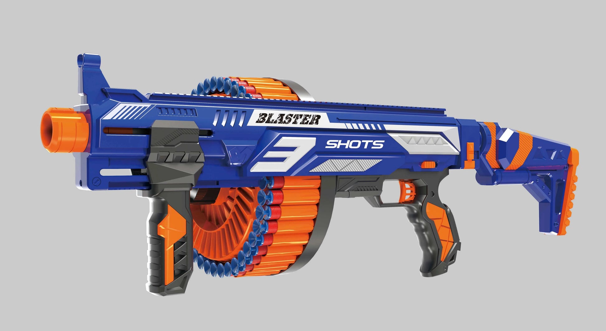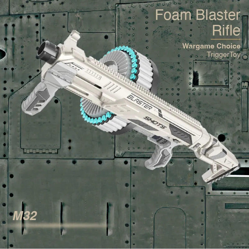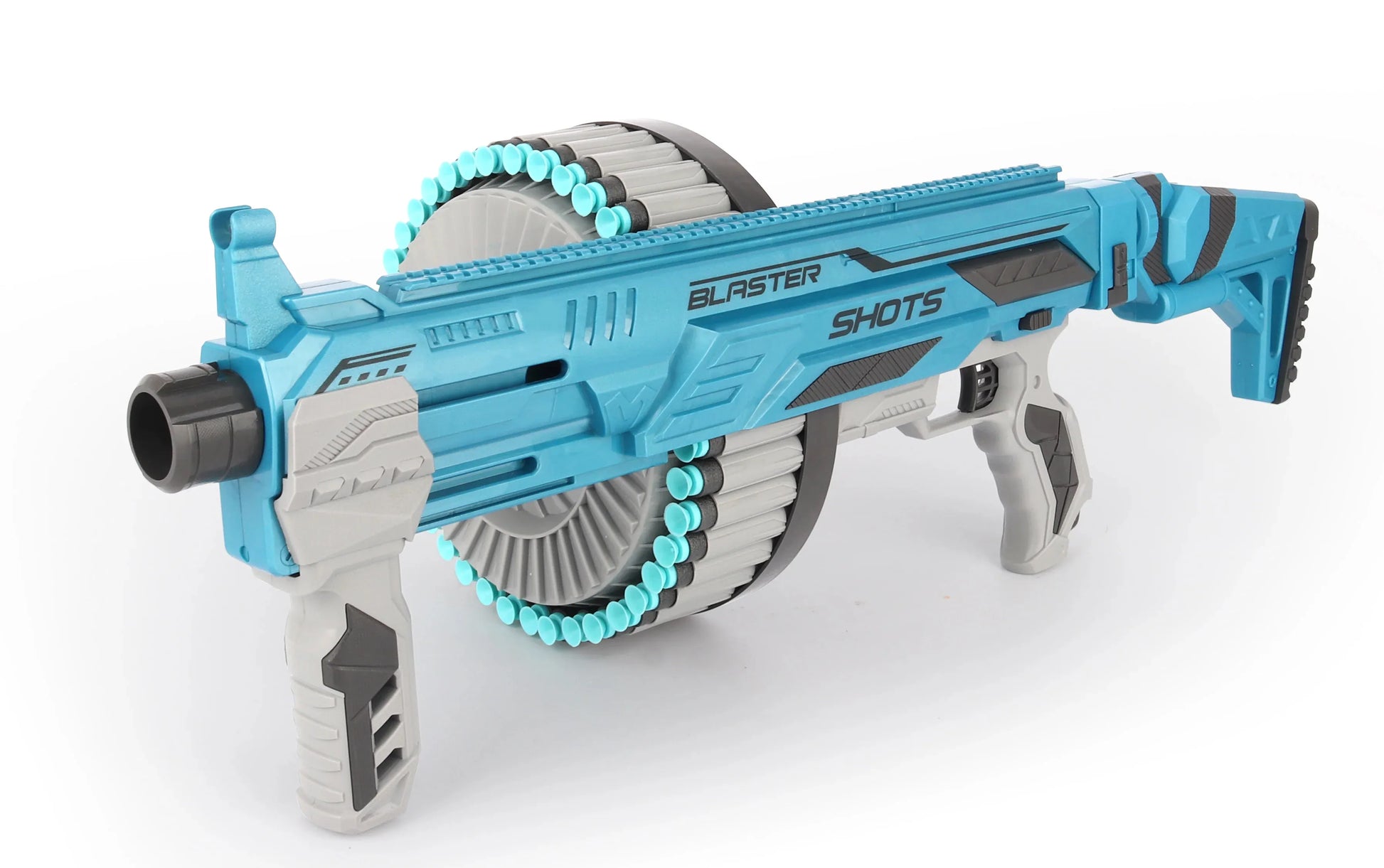 - the fire bull m32 foam blaster is manual pump action toy gun with a large drum.