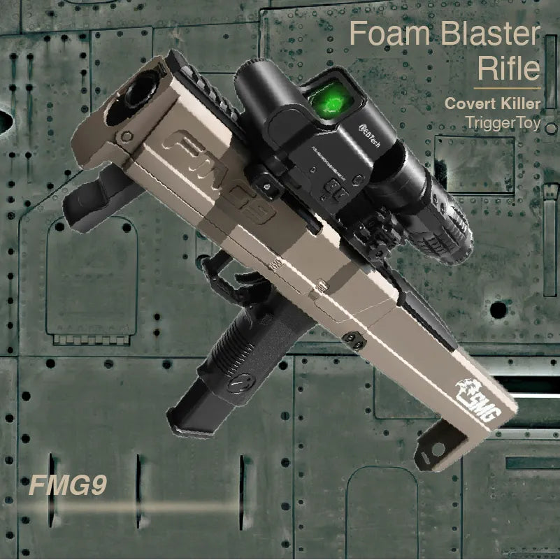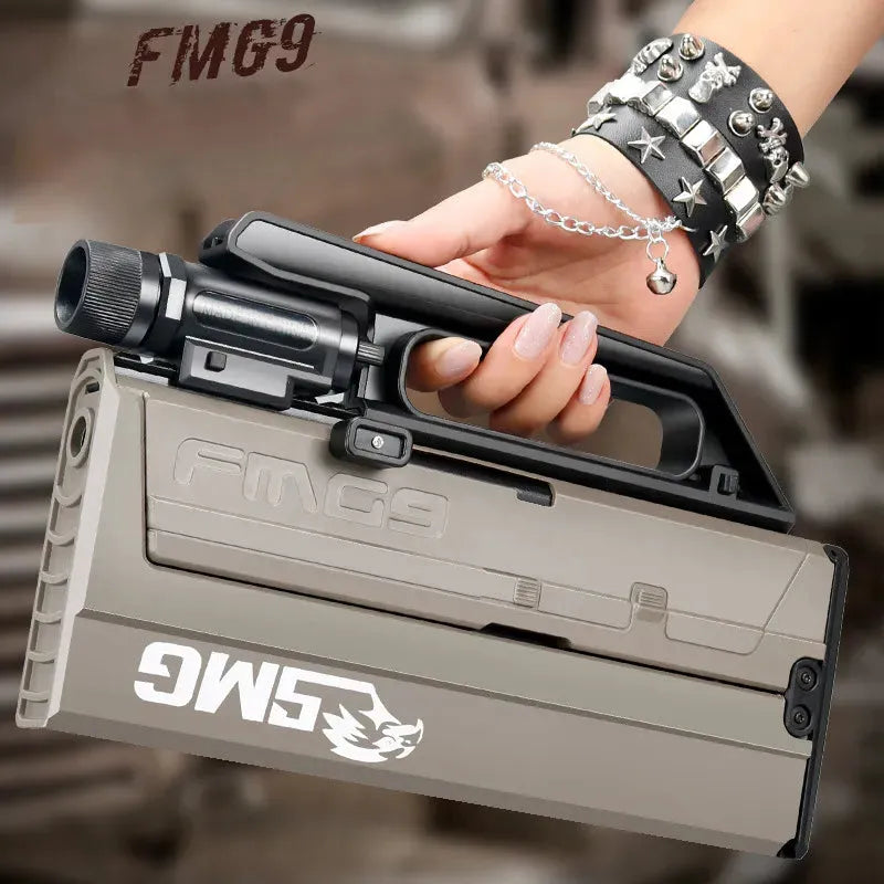The FMG-9 Foam Dart Blaster toy gun has equipped with a folding feature, allowing it to be concealed in a single key motion. The manual action and shell ejecting make it a great choice forsafe play. With its sleek design, it's the perfect toy for any blaster enthusiast.
