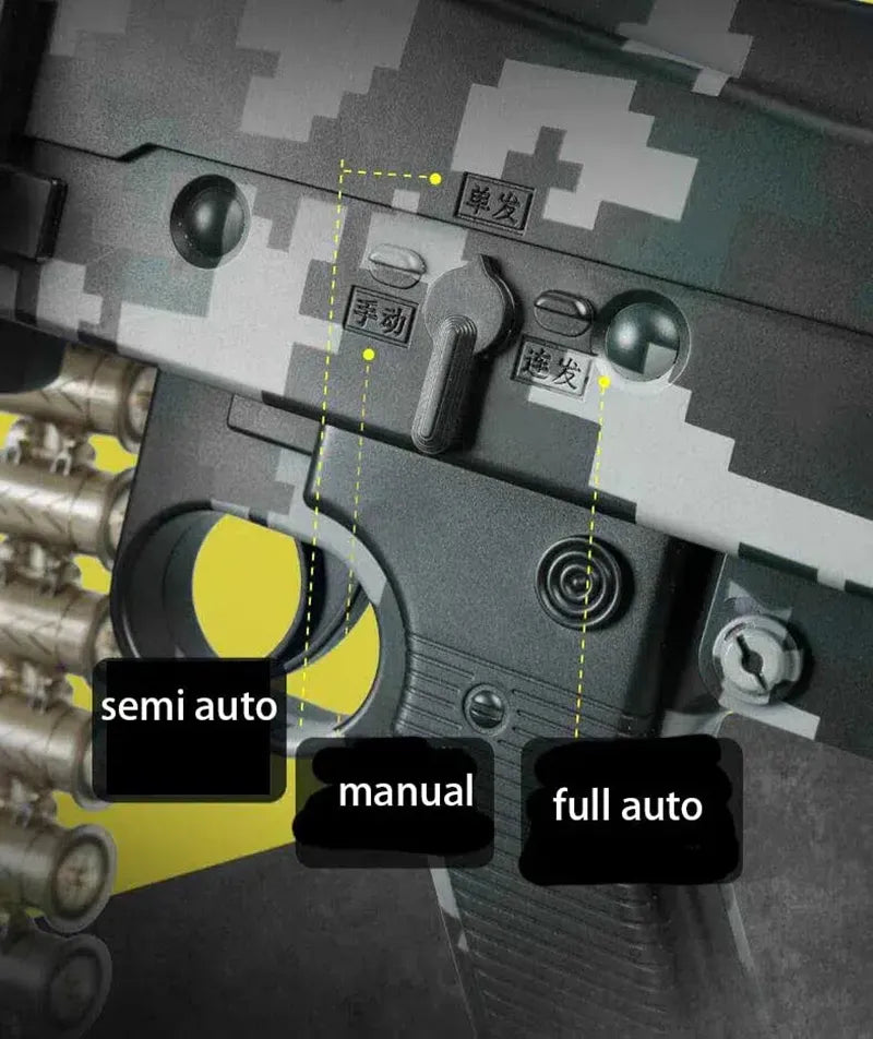 - With 3 fire modes: manual; semi auto and full automatic, the manual mode can shoot without battery.