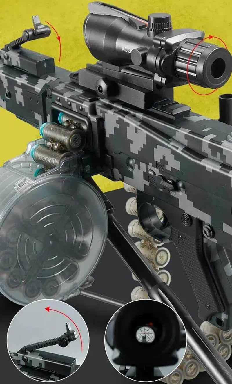 The Lehui MG3 WW2 Foam Dart Blaster offers hours of fun with its 3 fire modes – manual, semi-auto, and fully-automatic. The ergonomically-designed butt stock, coupled with its tripod, makes it easy and comfortable to use, making this blaster toy a perfect pick for any occasion.