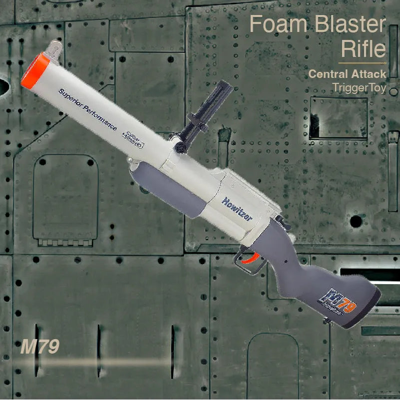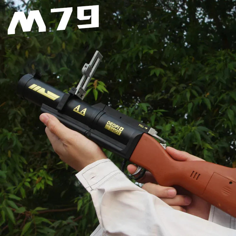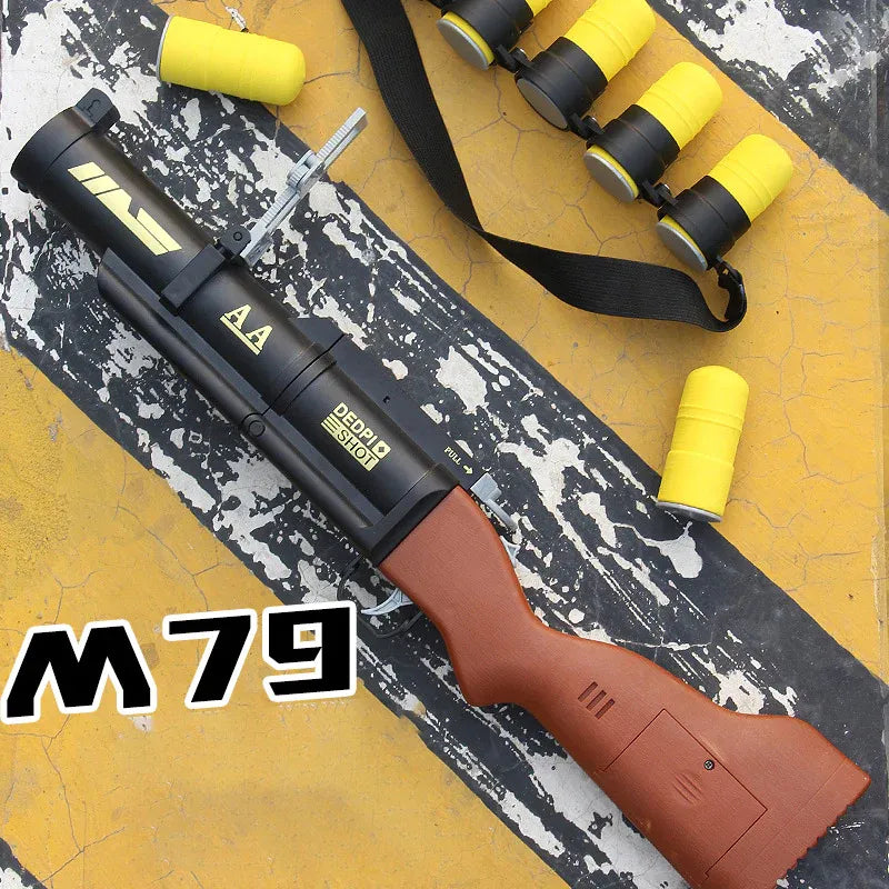 The M79 grenade launcher soft bullet toy is a single-shot, shoulder-fired, fragmentation grenade launcher for launching 40×46mm grenades. It uses what the US Army calls a high-low propulsion system to maintain low recoil. It first appeared in the Vietnam War.