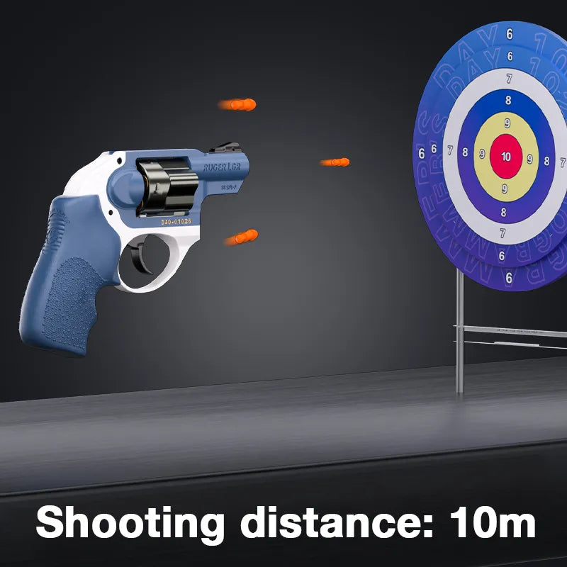 Measuring at 6.6 inches in length, the Ruger LCR Dart Blaster is compact and ergonomic, fitting comfortably in your hand for extended play sessions. With a shooting range spanning 8 to 10 meters, the Ruger LCR Dart Blaster ensures that no opponent is out of reach. Equipped with the convenience of one-click shell removal, reloading becomes a breeze, ensuring minimal downtime during intense dart battles.