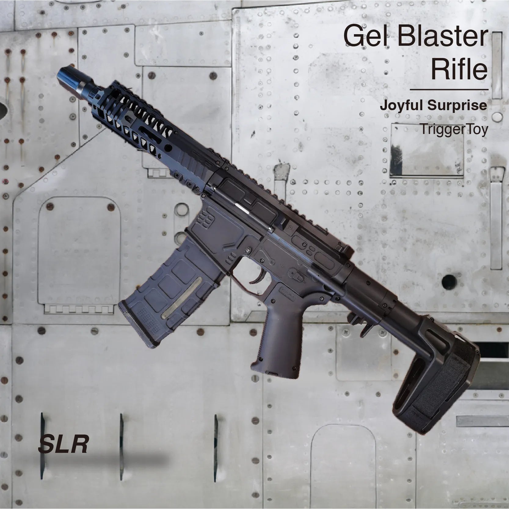 【AR Assault Rifle Gel Blaster】Just pull the trigger, gel toy blaster will automatically fast-shoot gel balls; the gel balls will burst on impact and evaporate completely without stain or residue, it is eco-friendly and safe.