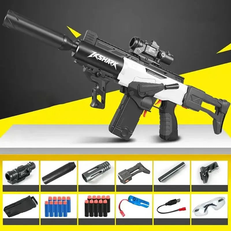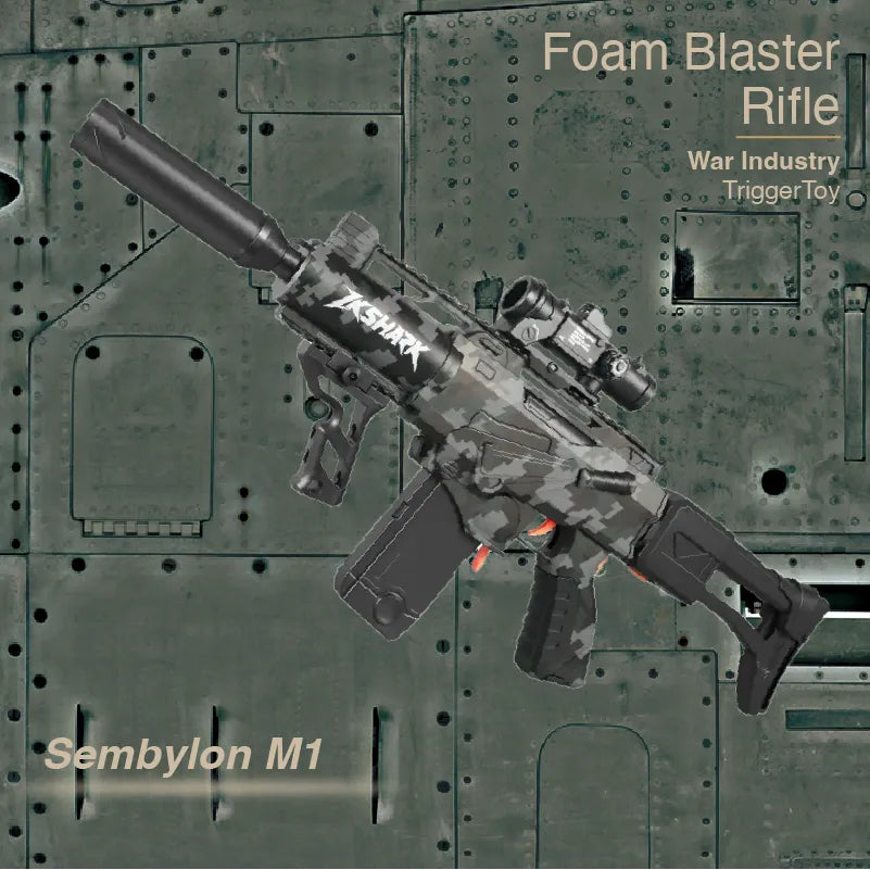 Experience thrilling and realistic foam dart battles with the Sembylon M1 227 Electric Semi-Auto Rifle Foam Dart Gun. With its mag-fed tactical rifle style and semi-automatic fire mode, you'll have a clear advantage over your opponents. Plus, its dust cover can be opened to fix any jammed darts, and the counterweight part in the stock provides balanced weight for improved handling.