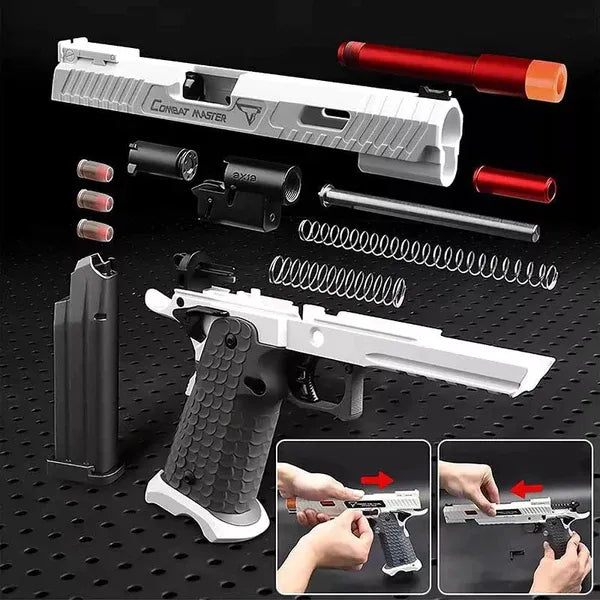 - The combat master 2011 nerf blaster is a manual toy gun and has a shell ejection and Last round bolt hold-open function.