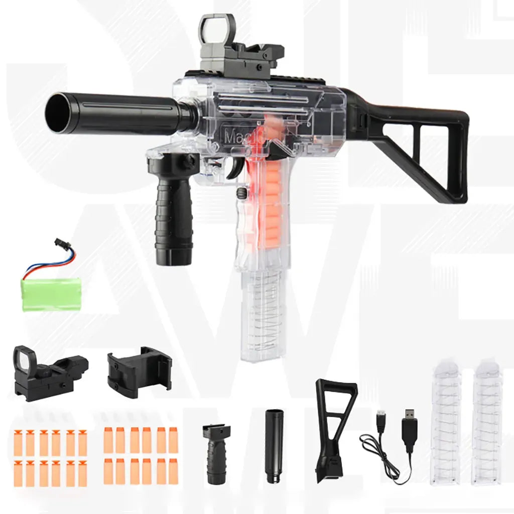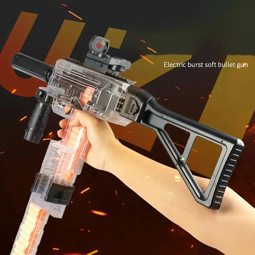 - The uzi toy gun is an electric four-flywheel powered with automatic shooting, and the rate of fire is very high.